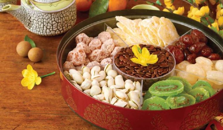 Les fruits confits sont les régal indispensables pendant le Festival du Nouvel an vietnam. Les mut tet ne sont pas des aliments à servir dans un repas pendant les vacances du Têt. Les vietnamiens les mettent toujours dans de belles boîtes à la table dans le salon pour accueillir des invités. Ils sont aussi un choix commun dans les paniers-cadeaux du Têt pour offrir aux amis et à la famille. Les fruits confits sont grands en variété, avec beaucoup de goûts: la noix de coco, la carotte, le fruit étoilé, la graine de lotus, le gingembre ou le kumquat...